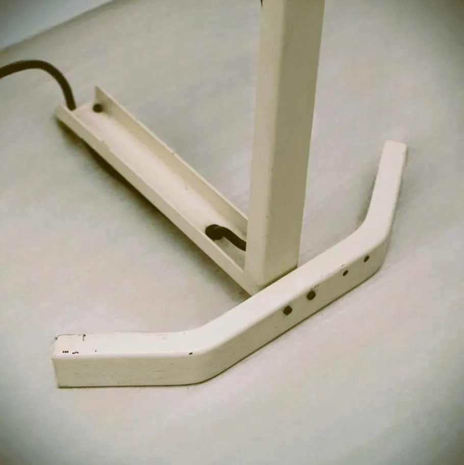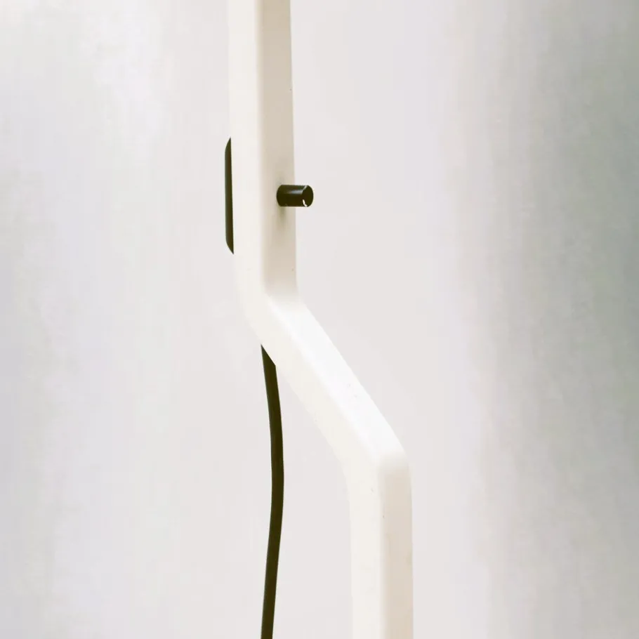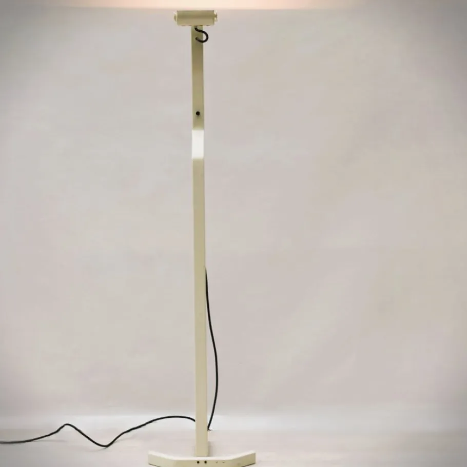 The “Sirio” lamp stands out for its elegant and clean silhouette. The structure is made of light-colored lacquered metal, which gives it a refined and discreet appearance, capable of integrating harmoniously into different furnishing contexts. The design consists of a slender and vertical stem that rests on a stable and geometric base, with a distinctive profile.