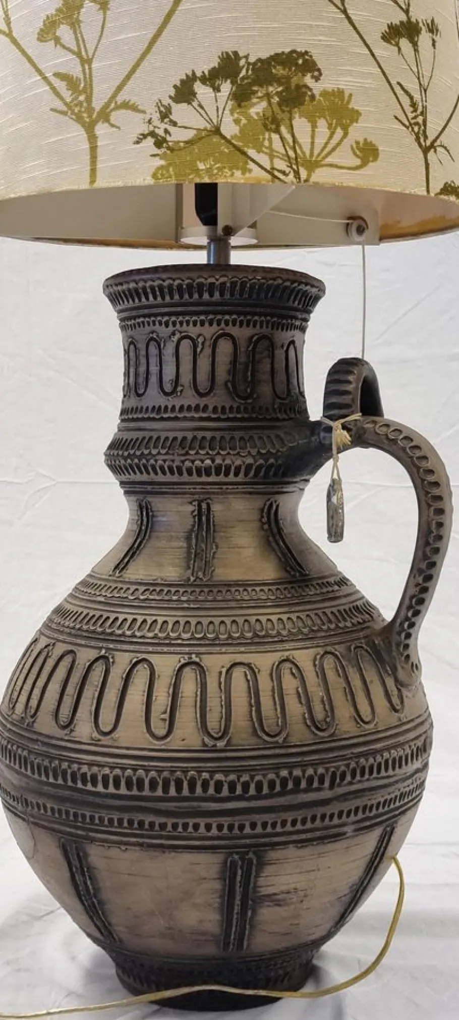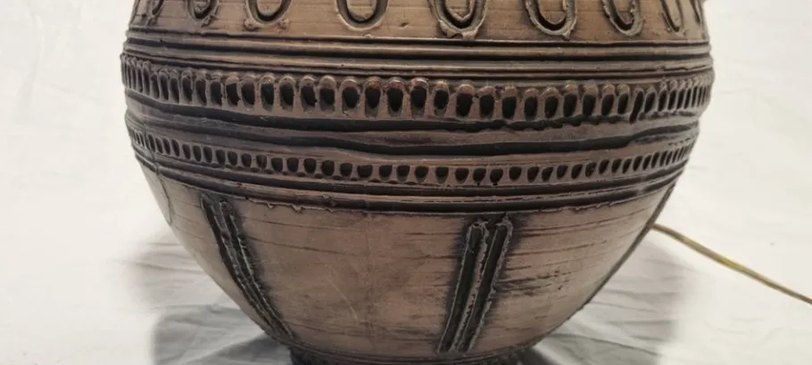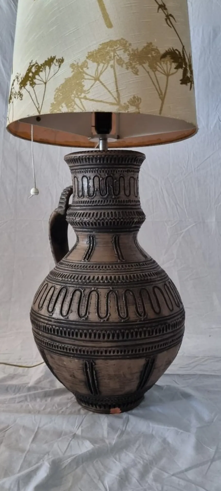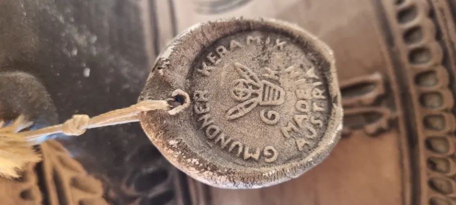The maker of this lamp is the Austrian company Gmundner, which still exists today. Every piece they produce is made by hand. This lamp is no longer produced, but comes from the 1970s. Also handmade and it shows. It is marked on a loose ceramic coin that is attached to the lamp.