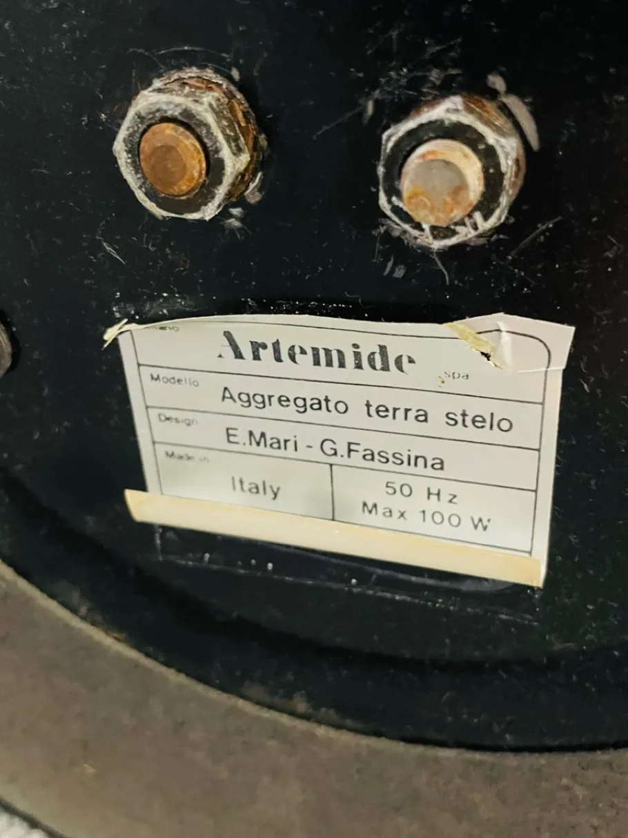 Manufactured by Artemide, designed by Enzo Mari and Giancarlo Fassina.