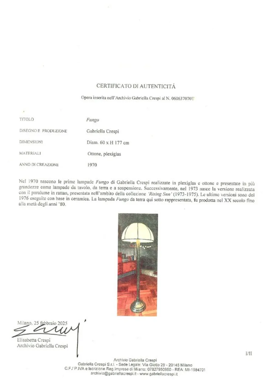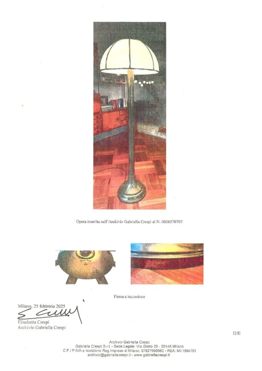 Certificate of authenticity issued by the Gabriella Crespi Archive, Milan.