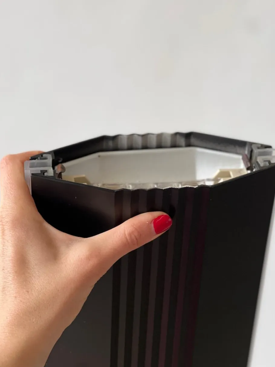 The dimmer on the stem allows the regulation of the light intensity, with double emission of diffused and indirect light.