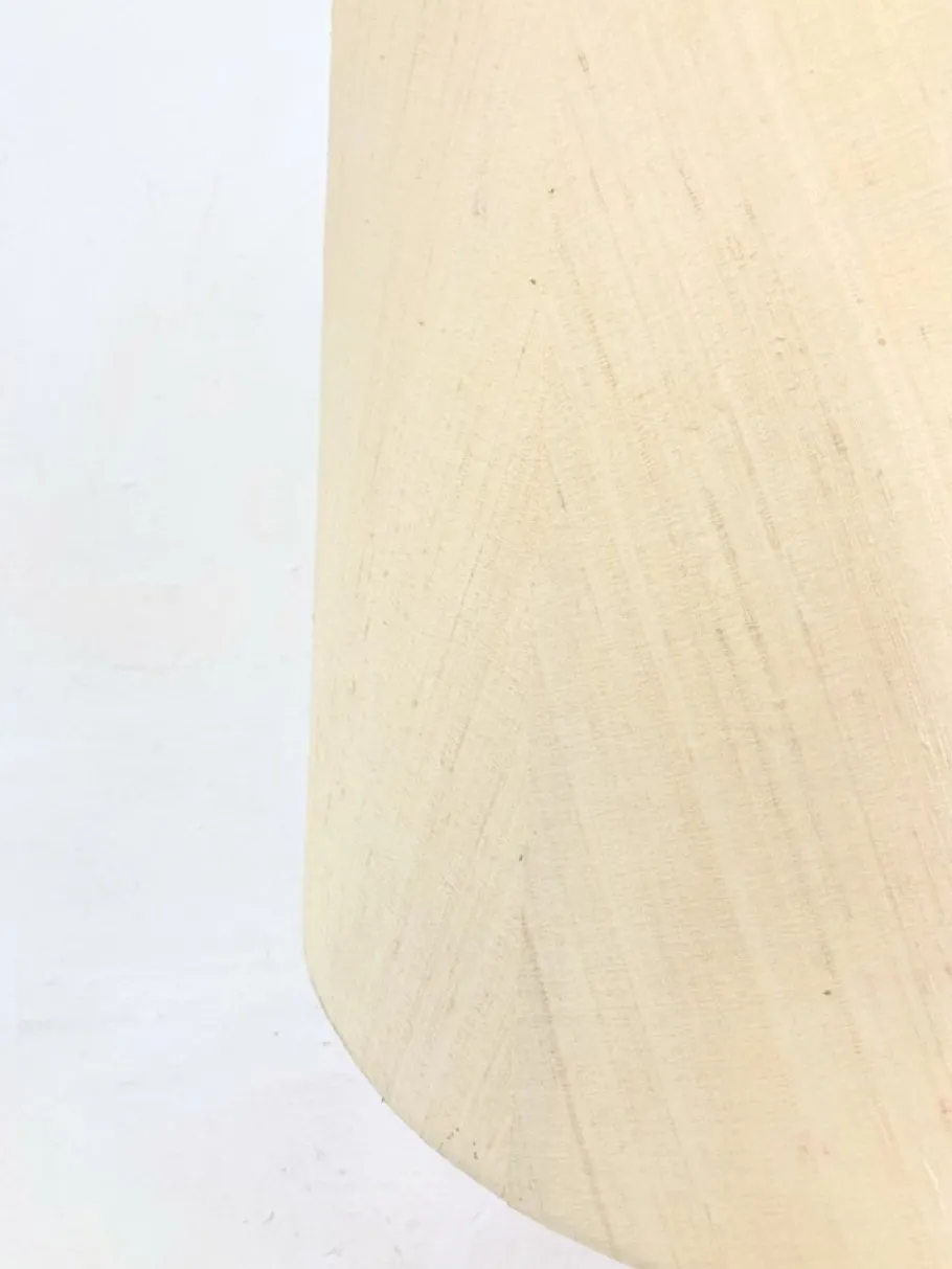 Good used condition. The base consists of 2 parts. Slight dents at the joints. The shade has some stains.