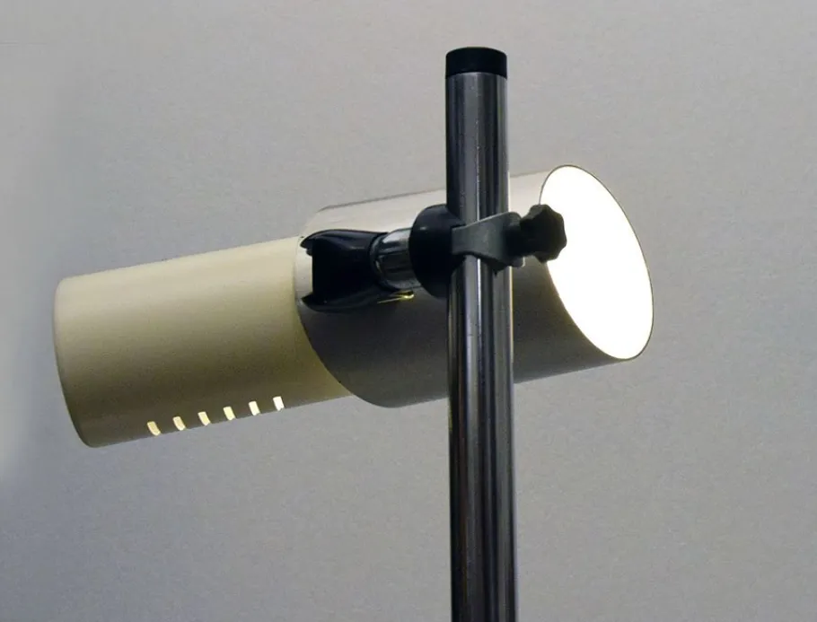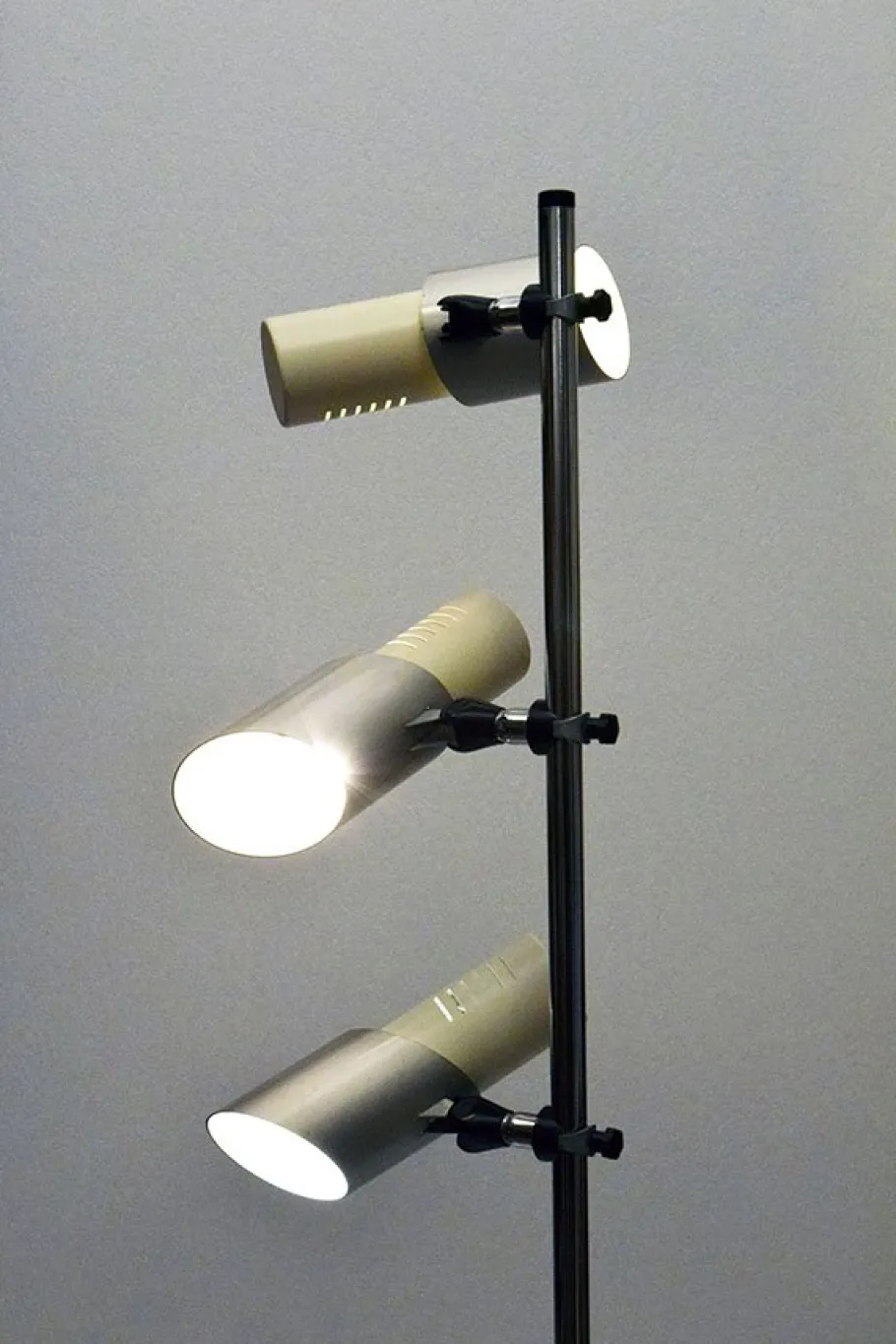 Painted metal base and chromed steel bar, adjustable spotlights.