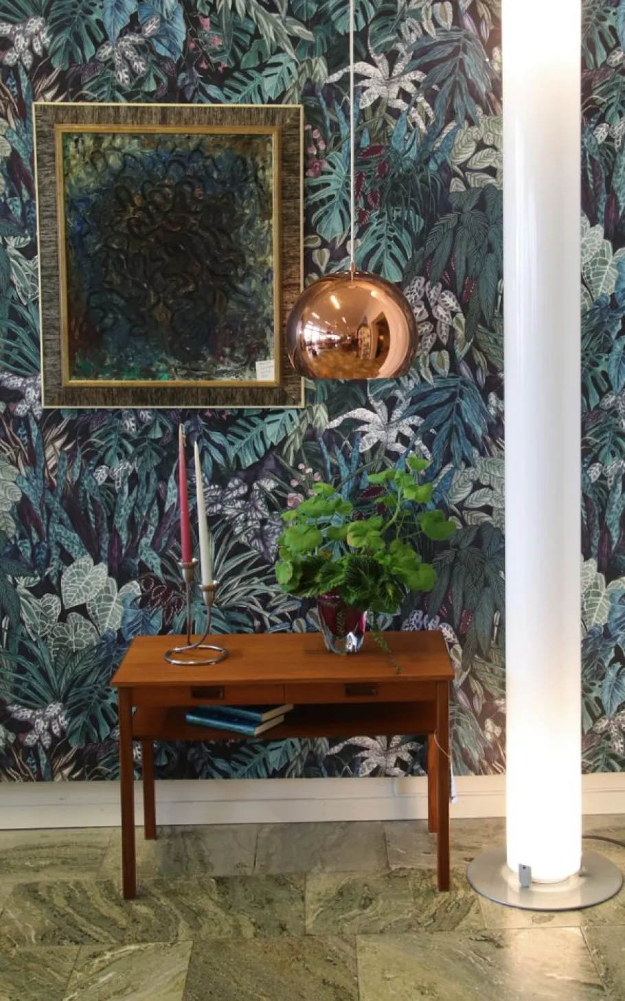 200 cm high and 17 cm ø and the foot is approx. 35 cm ø.