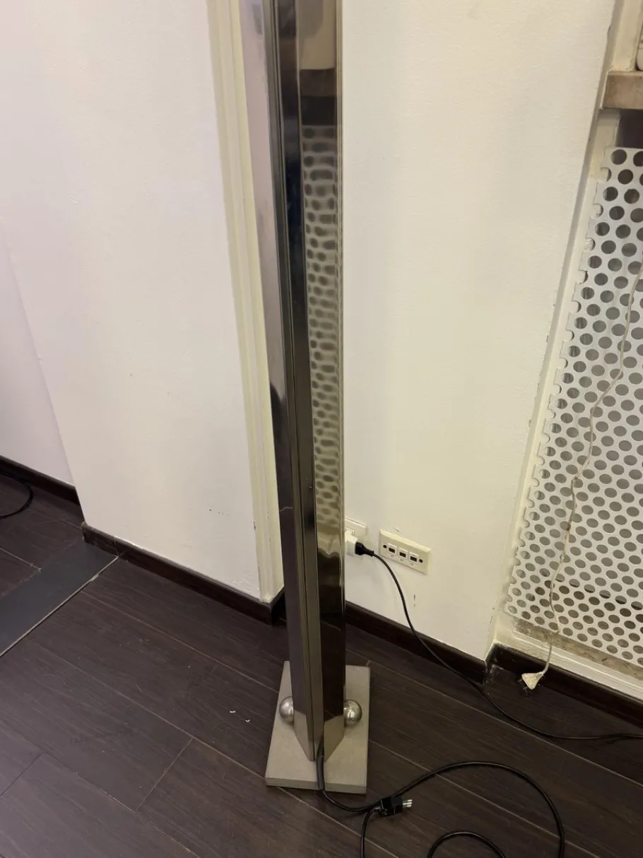 This lamp stands out for its slender vertical structure, composed of metal and steel elements, which give solidity, formal rigor and a minimalist aesthetic typical of Takahama’s design language. The base in pietra serena, a noble material of the Tuscan architectural tradition, adds a refined material contrast, visually stabilizing the whole and recalling the balance between nature and artifice.