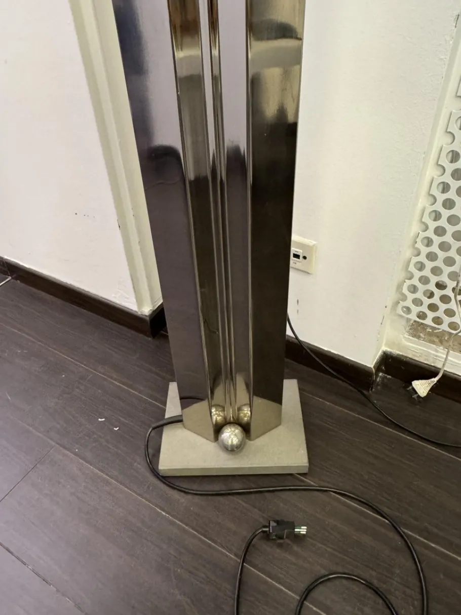 Elegant and with a strong sculptural impact, the “Totem” model floor lamp is a work of design signed by the Japanese architect Kazuhide Takahama, produced by the historic Italian company Sirrah around 1981.