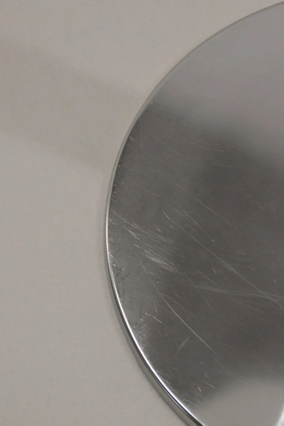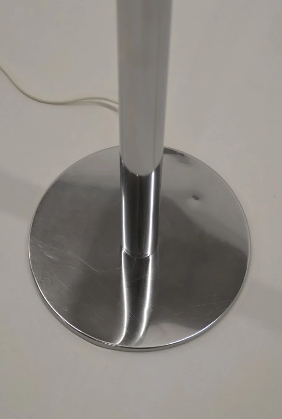 The floor lamp is in good vintage condition. The shade has a few minor scratches that are barely visible. Most of the wear is on the base, consisting of a few light dents and superficial scratches (see photos).
