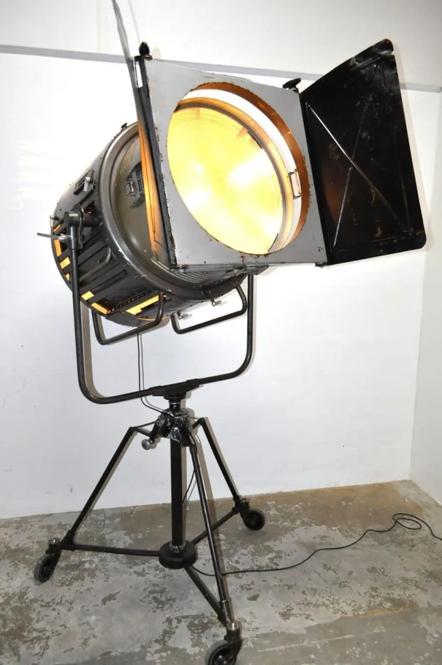 The spot is rotatable, tiltable and adjustable in height. On top of the spot is a large eye. The spotlight can also be removed from the tripod and hung separately from the eye.