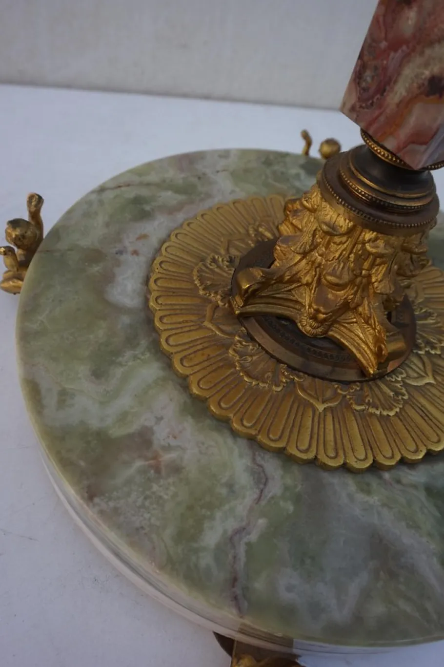 Take note of the exquisite gilt bronze and brass details such as the 4 carriers down the base of the lamp and the eagle on top of the lamp