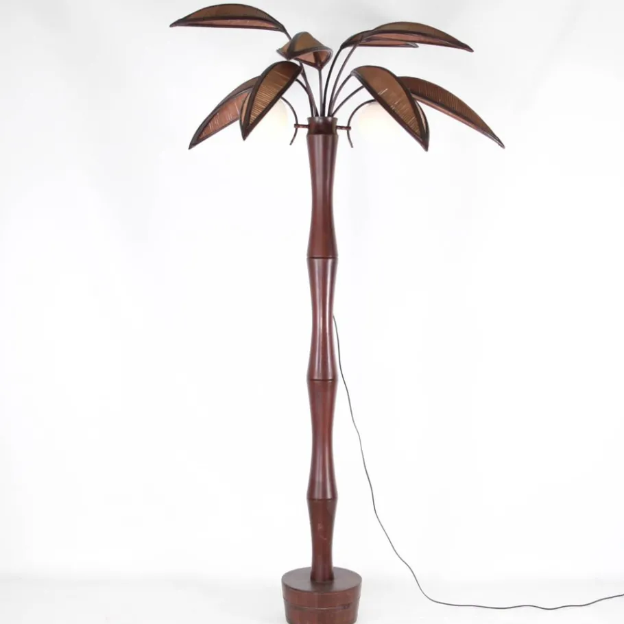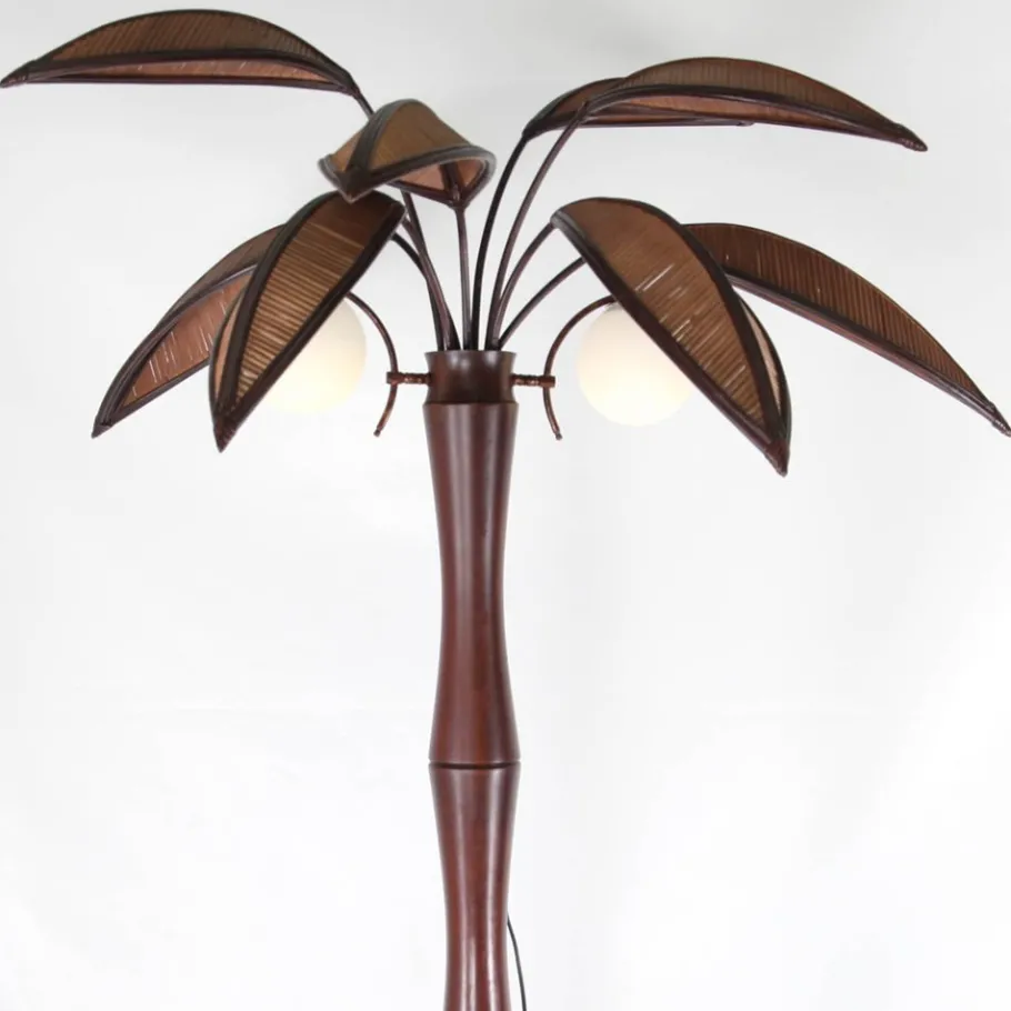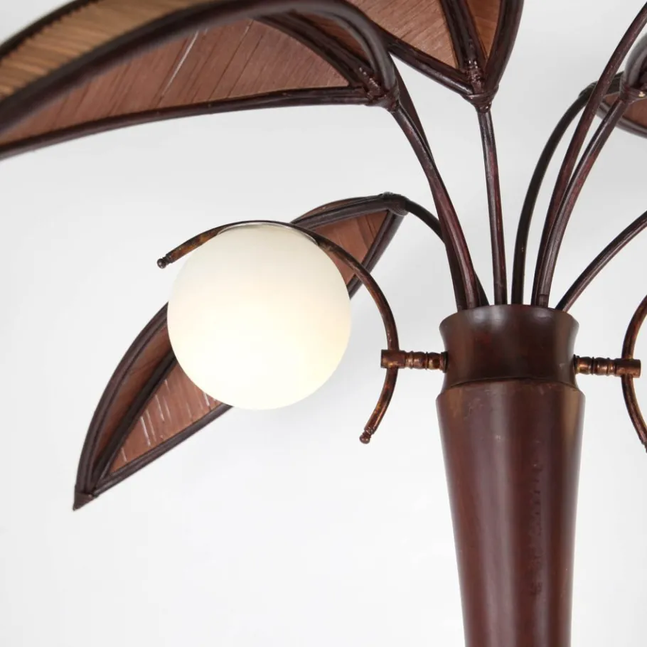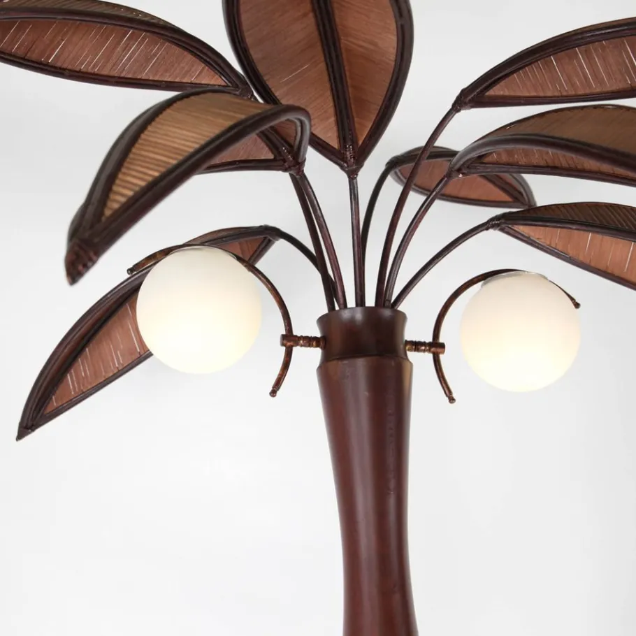 10 removable woven rattan fins, 2 lights in opaline glass “coconuts”.