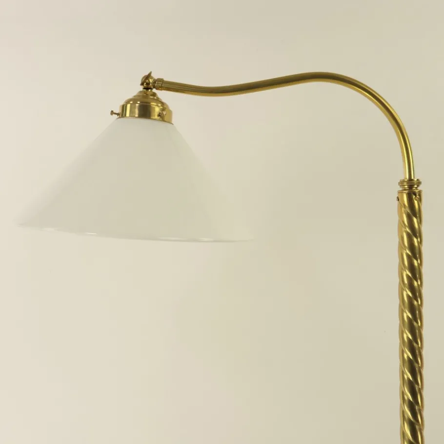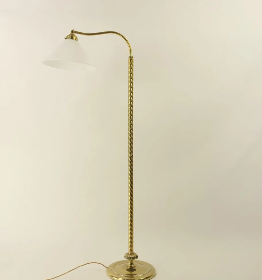 | Restoration and Damage Details | Light wear consistent with age and use, Patina consistent with age and use, Surface has been polished, Rewired and/or new electrical components, Dimensions: adjustable H 133-160 cm x W 40cm x D 25 cmShade diameter: 25 cmStand diameter; 22 cmFloor lamp requires 1 light bulbs (socket: E-27) |