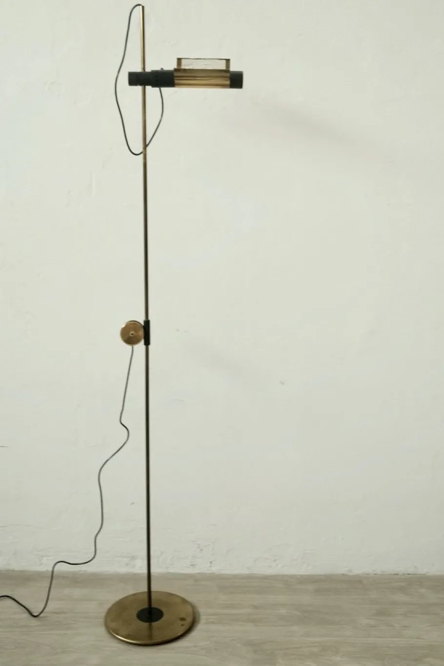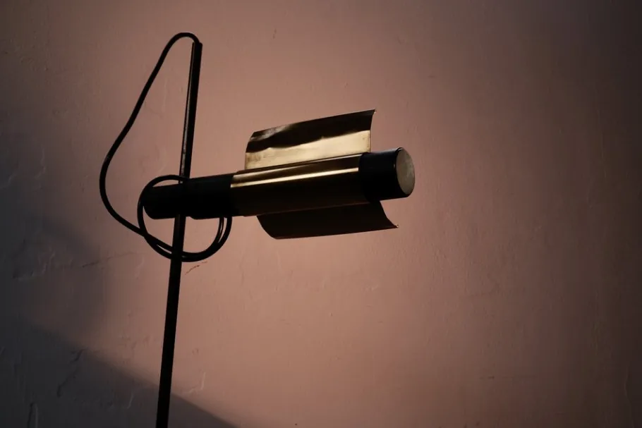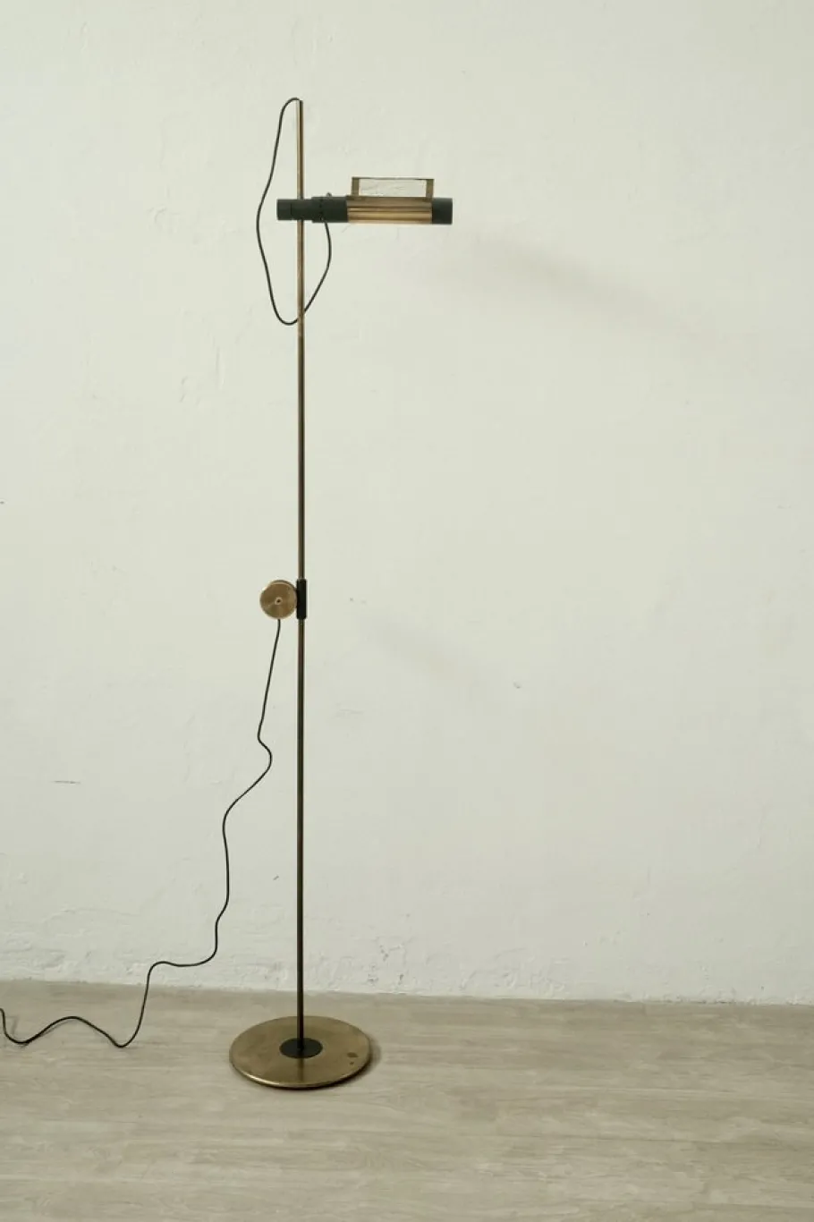 Circular base, thin stem on which flows the paralune that in addition to being adjustable in height is also adjustable the “wings” in the brass rotate at 360 °.