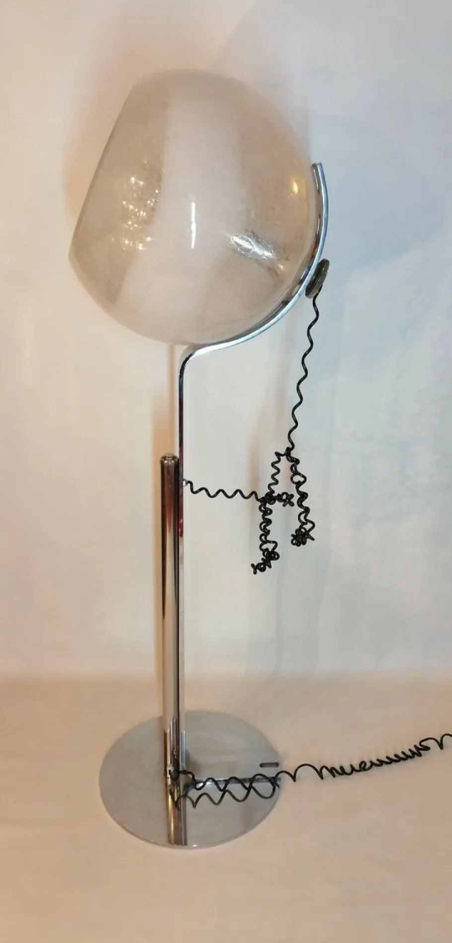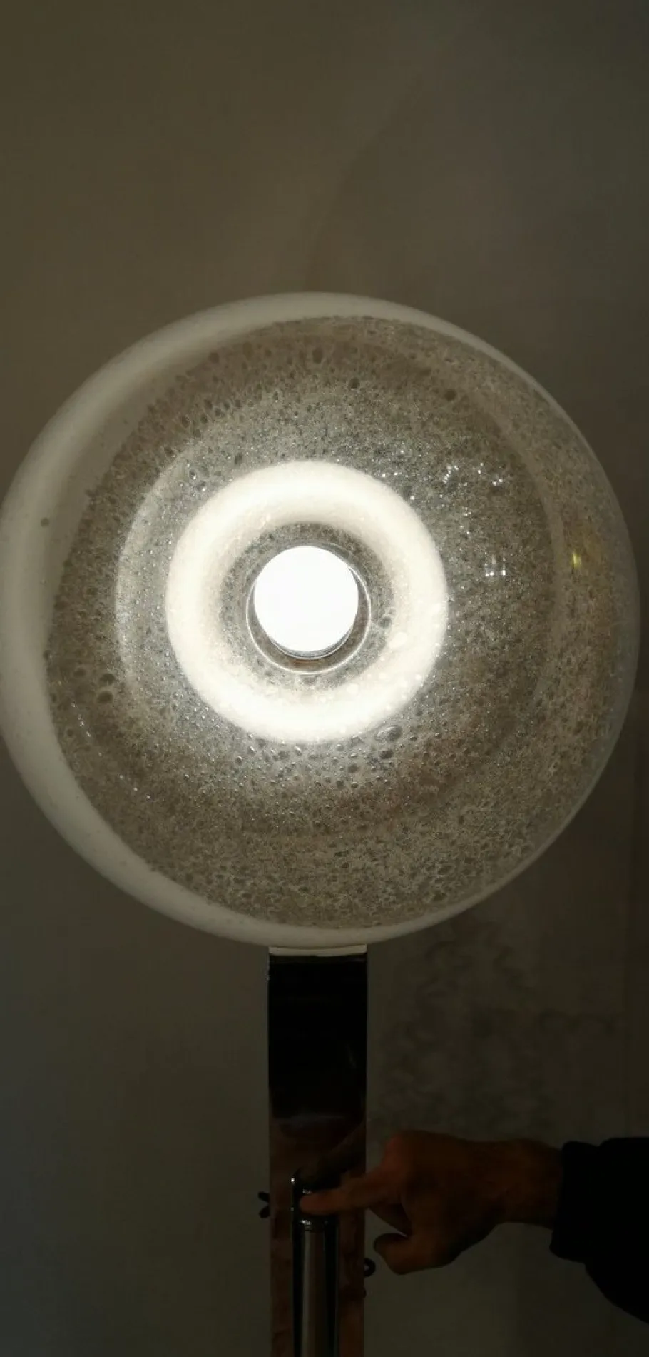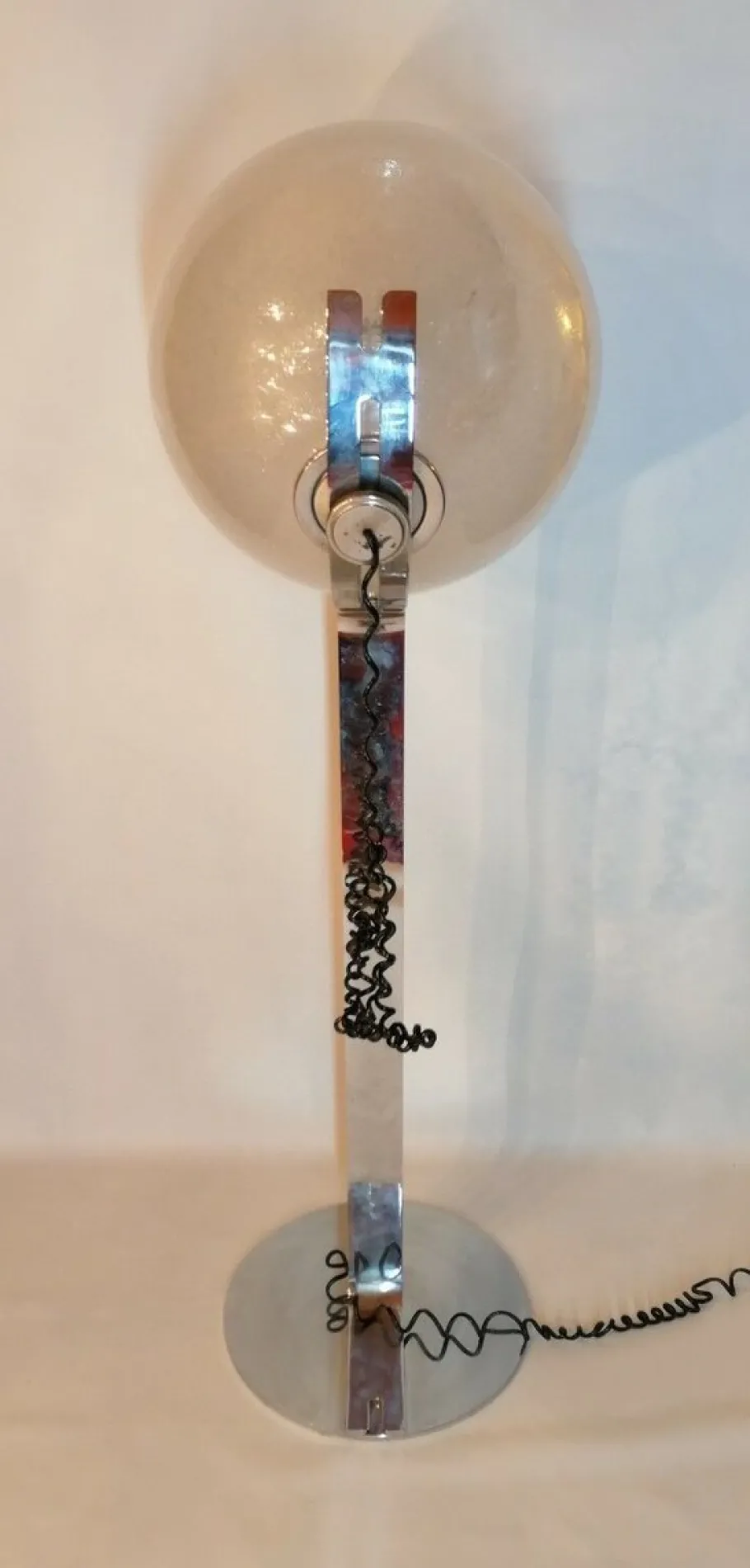 The position of the large sphere is adjustable on a rear axle equipped with a groove, so the position can vary from the front to converge the luminous beam upwards