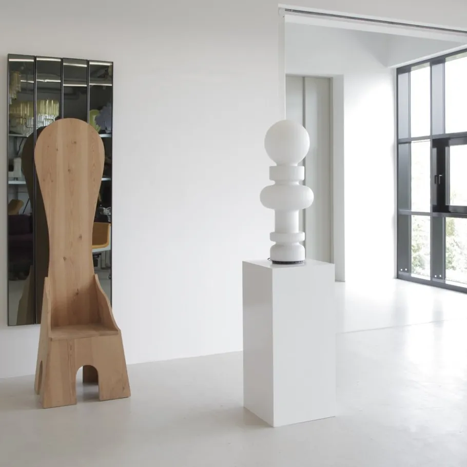 Bobo Piccoli was born in 1927 into a family of Milanese intellectuals. The Piccoli house was frequented by Mario Sironi, Carlo Carra, Giuseppe Ungaretti and many other artists. Piccoli studied the classics and while painting became his main medium, he constantly sought a synthesis among the arts. This led to projects with architects such as Marco Zanuso and Roberto Menghi. In 1968, Piccoli began working with Fontana Arte, creating a number of lighting elements such as the Re and Regina lamps.